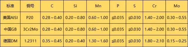 模具人都知道P20是一種最為常用的塑料模具鋼,P20這個(gè)鋼號(hào)是美國(guó)AISI標(biāo)準(zhǔn)的鋼號(hào),歐洲D(zhuǎn)IN標(biāo)準(zhǔn)稱之為1.2311,國(guó)內(nèi)的GB標(biāo)準(zhǔn)對(duì)應(yīng)的是3Cr2Mo,國(guó)內(nèi)模具廠的人習(xí)慣性的稱之為P20。