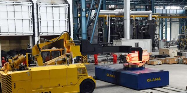 撫順特鋼新建7000噸快鍛機(jī)由德國(guó)Siempelkamp公司制造,其配套的大型鑄件由中國(guó)二重制造。該設(shè)備總安裝重量達(dá)到1300噸,單件最大重量186噸。7000噸快鍛機(jī)配套22臺(tái)爐窯,包括臺(tái)車(chē)加熱爐3臺(tái)、臺(tái)車(chē)熱處理爐13臺(tái)、室式爐6臺(tái),年設(shè)計(jì)產(chǎn)能4萬(wàn)噸。
