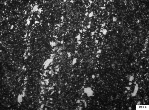 在奧氏體化溫度下,由于長時間保溫所導(dǎo)致碳化物出現(xiàn)偏聚和粗化的原因和由于加熱溫度過高所導(dǎo)致的碳化物粗化、偏聚的原因基本相同。因為共晶碳化物的偏聚和粗化必須通過合金元素的擴散來完成,在加熱溫度、碳化物尺寸和片層間距及碳化物的不均勻程度相同的條件下,保溫時間愈長,合金元素的擴散程度愈高,碳化物的粗化和偏聚也將愈明顯。