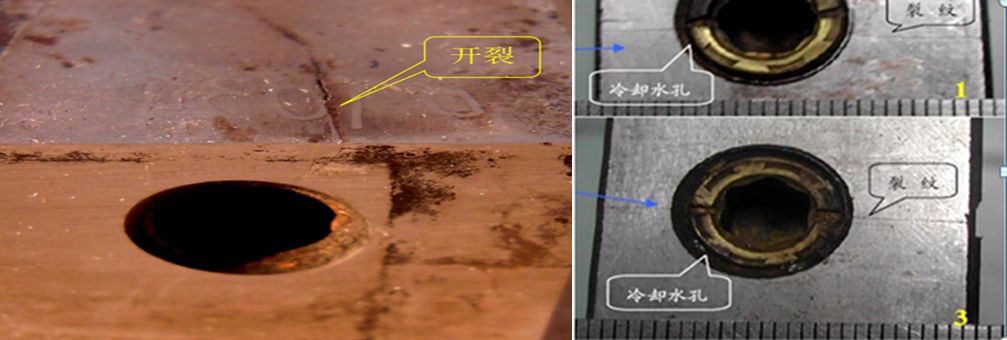 b.熱處理淬火壓力不足冷卻速度不夠造成模具韌性不足,當水孔處受氯離子腐蝕是容易引起水孔應力腐蝕開裂的原因之一。