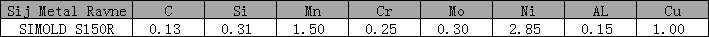 表面處理:SIMOLD S150R含有約0.9%的Al,非常適合氮化處理,得到表面硬度超過60HRC。SIMOLD S150R也適合其他改進(jìn)表面質(zhì)量的工藝,例如鍍鈦、鍍鉻、鍍鎳等等。