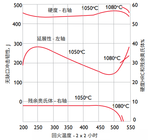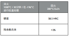 在1080°C淬火和530°C回火可獲得達(dá)58HRC的硬度,仍然具有良好的延展性。