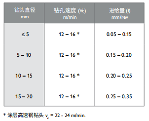 4)鉆孔直徑為10–20mm的進(jìn)給速度
