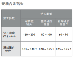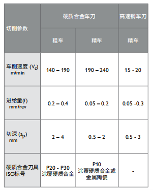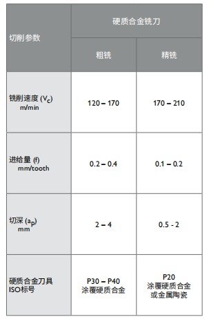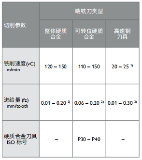 以下機(jī)加工參數(shù)僅作為加工指南,必須隨實(shí)際加工條件做相應(yīng)調(diào)整。