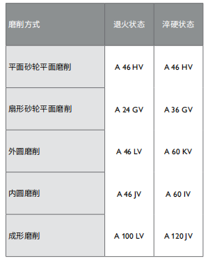 一般砂輪建議如下。更多詳情可參見工模具鋼的磨削手冊(cè)。