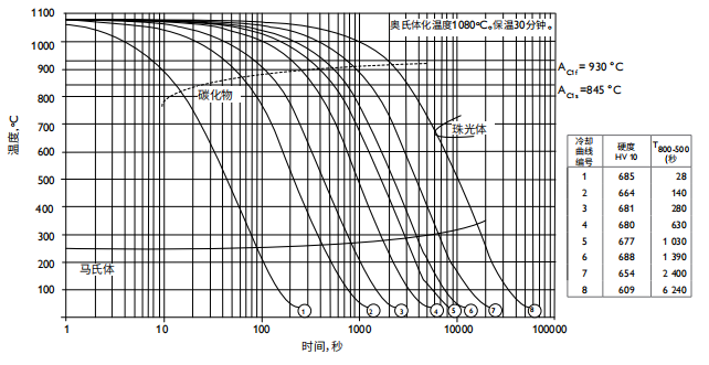 奧氏體化:1080℃/30分鐘,在800℃-500℃之間以0.64℃/秒的速度在真空爐中冷卻。