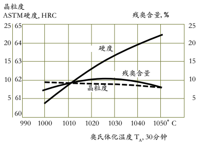 硬度、晶粒度,殘奧含量和奧氏體溫度間的關(guān)系